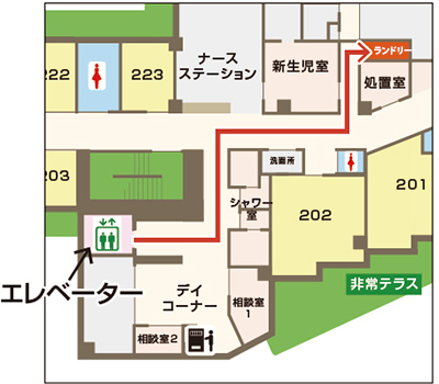 私物の洗濯物は2階の無料ランドリーをご利用ください。利用時間は、6時 ~ 21時です。21時までに乾燥を終了し、洗濯物を取りに来てください。洗濯から乾燥終了時間までの目安時間は、2 ~ 3 時間です。